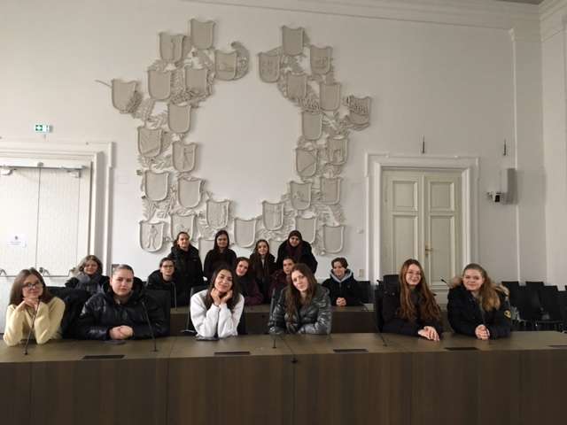 Die Schülerinnen der 3HLW lernten beim Demokratieatelier von Akzente Salzburg die Räumlichkeiten des Salzburger Landtages kennen.